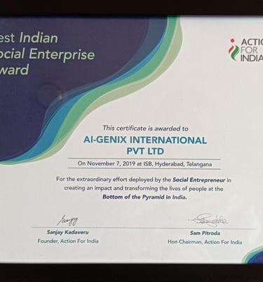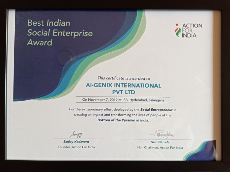 Best Social Enterprise Award, IIT Hyderabad Year 2019