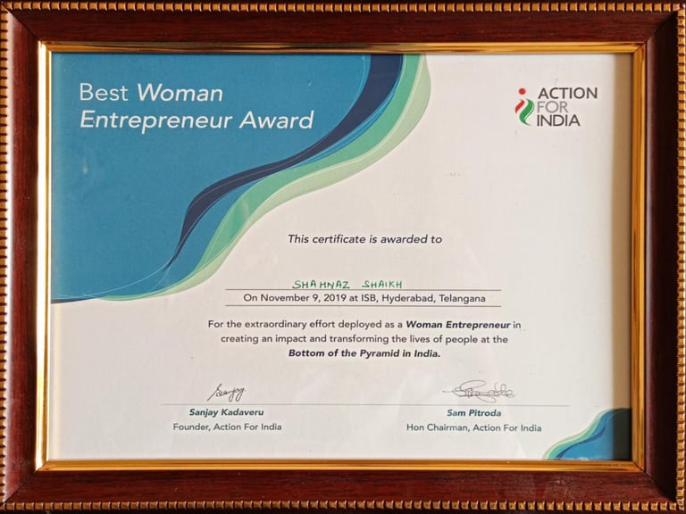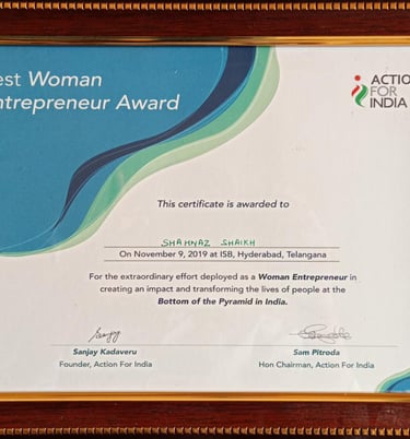 Best Woman Entrepreneur Award, IIT Hyderabad Year 2019