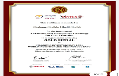 Gold medal for our Invention, WORLD INVENTION AND TECHNOLOGY EXPO 2021