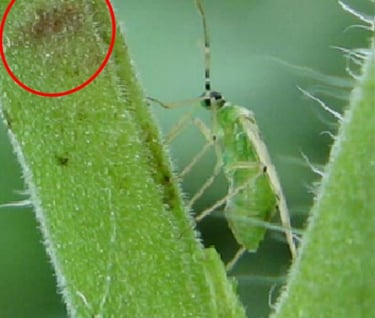 Nesidiocoris tenuis is a tropical mirid bug used as a biocontrol agent in protected crops, including tomatoes. Although N. tenuis predates important insect pests, especially whitefly, it also causes damage by feeding on tomato plants when prey populations decline, resulting in significant economic losses for growers. The pest is now established in some all-year-round tomato crops in Europe and control measures involve the application of pesticides which are incompatible with current IPM programs.