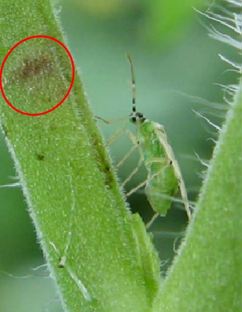 Nesidiocoris tenuis (Reuter) (Heteroptera: Miridae) is an omnivorous mirid bug of tropical origin which is used as a biological control agent for protected crops in Mediterranean countries (Biondi et al. 2016; Pérez-Hedo et al. 2021). N. tenuis has been called green tobacco capsid, tobacco leaf bug, tomato mirid, and tomato suck bug. The bug predates a range of economically important crop pests such as whiteflies (family Aleyrodidae), aphids (superfamily Aphidoidea), thrips (order Thysanoptera), and moths (order Lepidoptera) (Kim et al. 2016). However, the use of N. tenuis as a biological control agent is controversial. Although this bug prefers prey, it can start feeding on the crop when prey is absent (Nakaishi et al. 2011; Pérez-Hedo and Urbaneja 2016; Sanchez 2008). Insertion of the stylet into the phloem to derive nutrients leads to brown necrotic rings around stems and petioles followed by the drying of flower stalks and flower abortion (Arnó et al. 2010; Calvo et al. 2009; Castañé et al. 2011; Raman and Sanjayan 1984).