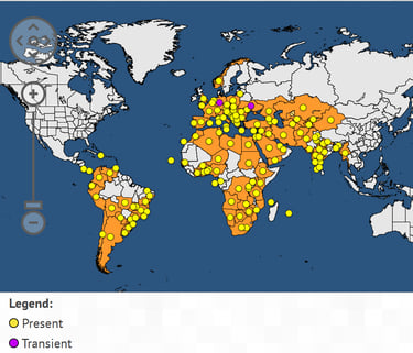 Tuta absoluta -World distribution map [Source: EPPO Global Database]